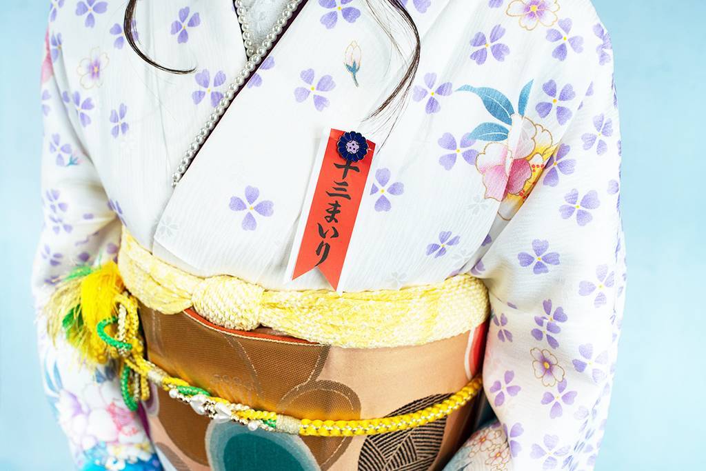 振袖在日本是未婚女性的第一禮服,用於出席正式場合或者重要日子。此套係的振袖和服面料是滌綸,圖案比較可愛清新。腰帶是半幅帶。