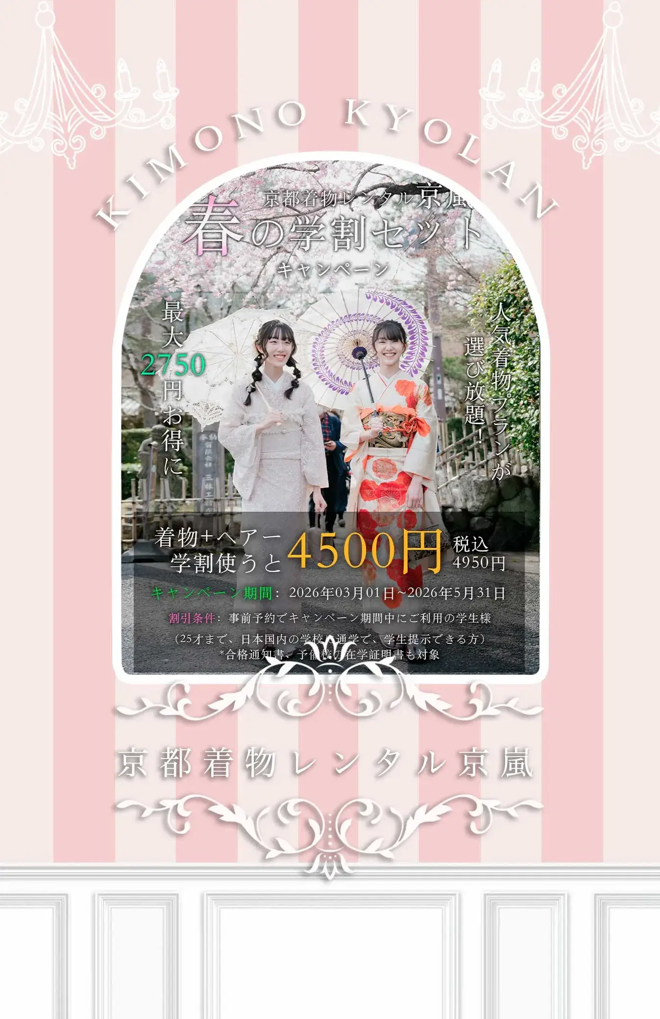京嵐へようこそ! 私たちは京都嵐山エリアにある着物レンタルショップです