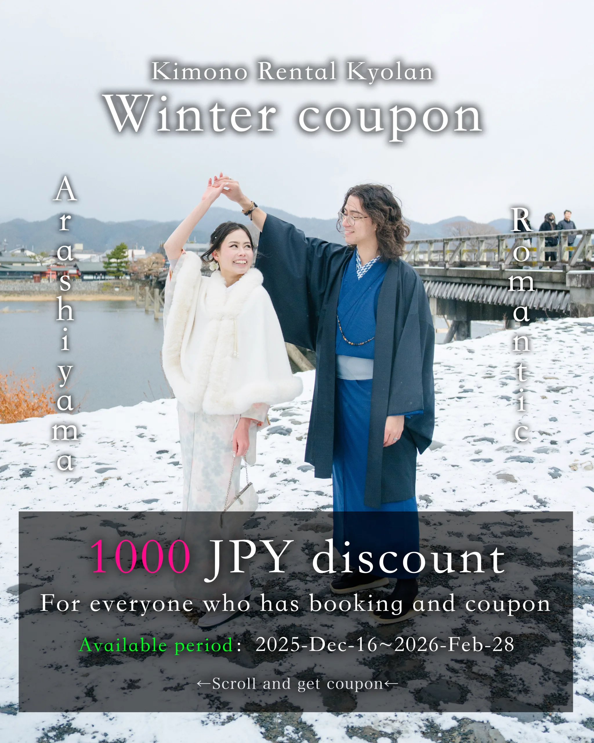 There is few weeks left for 2025. Kyoto is now on winter time, you may possibly see the beautiful snowy bamboo forest if lucky enough! We have prepared limited Coupon for your winter kimono rental at KYOLAN. Make sure you did not miss it!