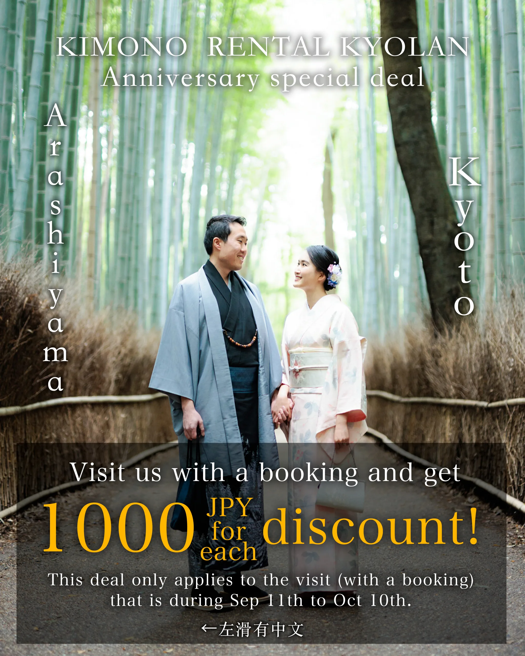 ¥1,000 JPY discount/person for KIMONO rental fee.